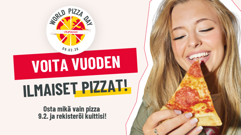 Osta mikä tahansa pizza Vapianosta 9.2., rekisteröi kuittisi alla olevalla lomakkeella ja olet mukana arvonnassa.