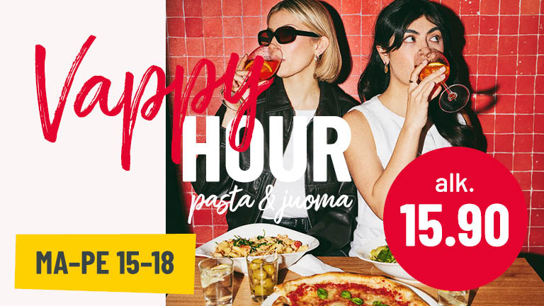 Tarjous on voimassa 4.-17.8.2025 Mikonkadun ja Itiksen Vapianoissa. Tarjousta ei voi lunastaa jo alennettujen tuotteiden, esim. lounastarjousten yhteydessä.